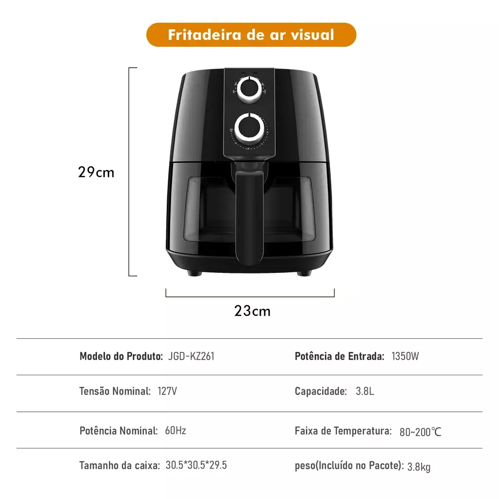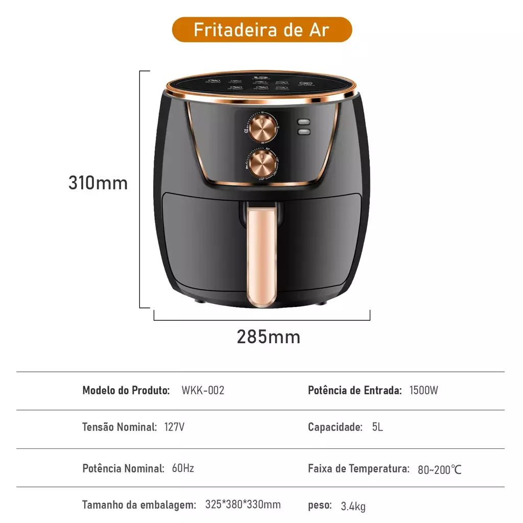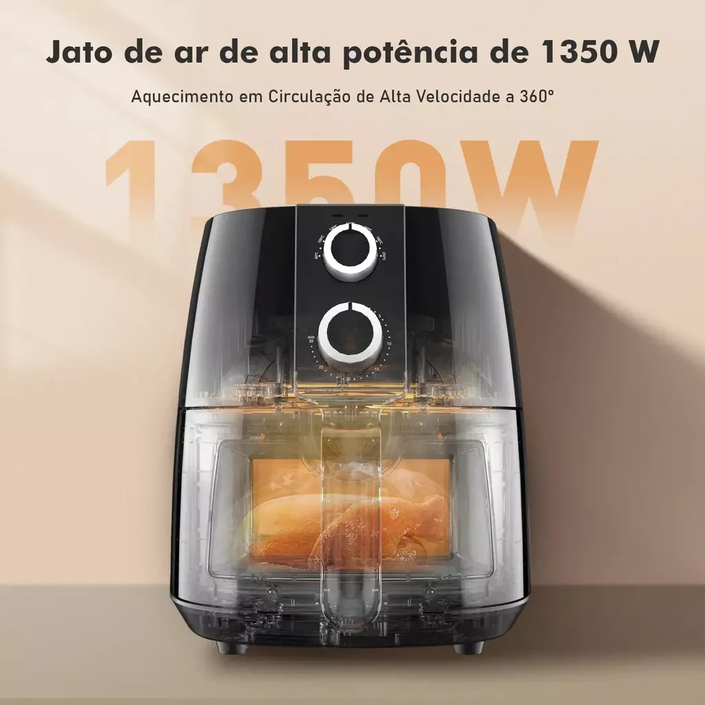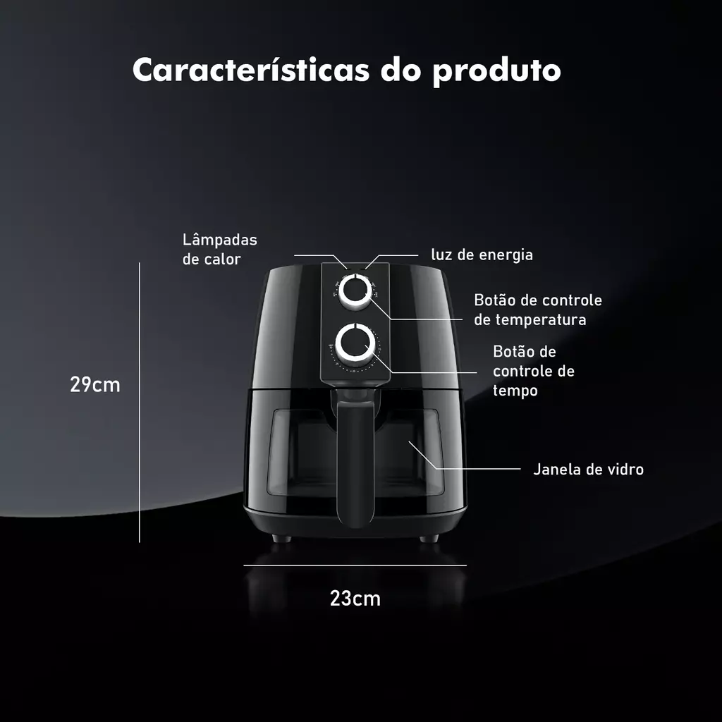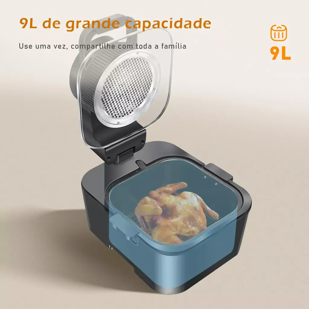 ?Tecnologia Inteligente de Controle de Temperatura?: Equipada com um sistema avançado de controle de temperatura e tecnologia de aquecimento rápido por circulação de ar quente a 360°. Substitui o óleo quente pelo ar, reduzindo a gordura nos alimentos, promovendo uma alimentação mais saudável e economizando energia