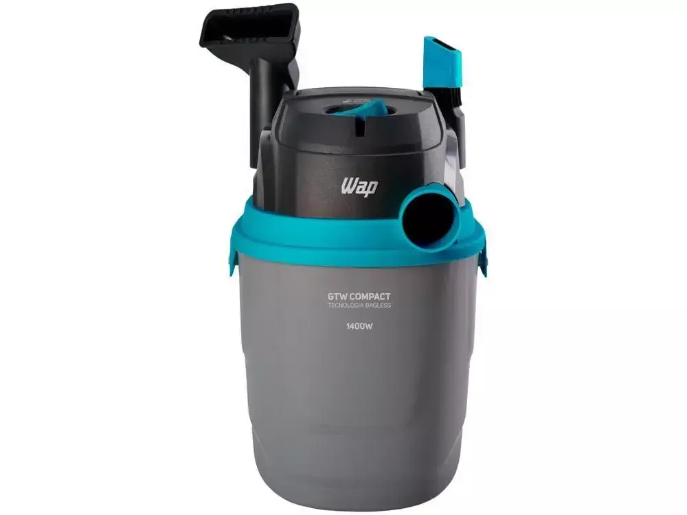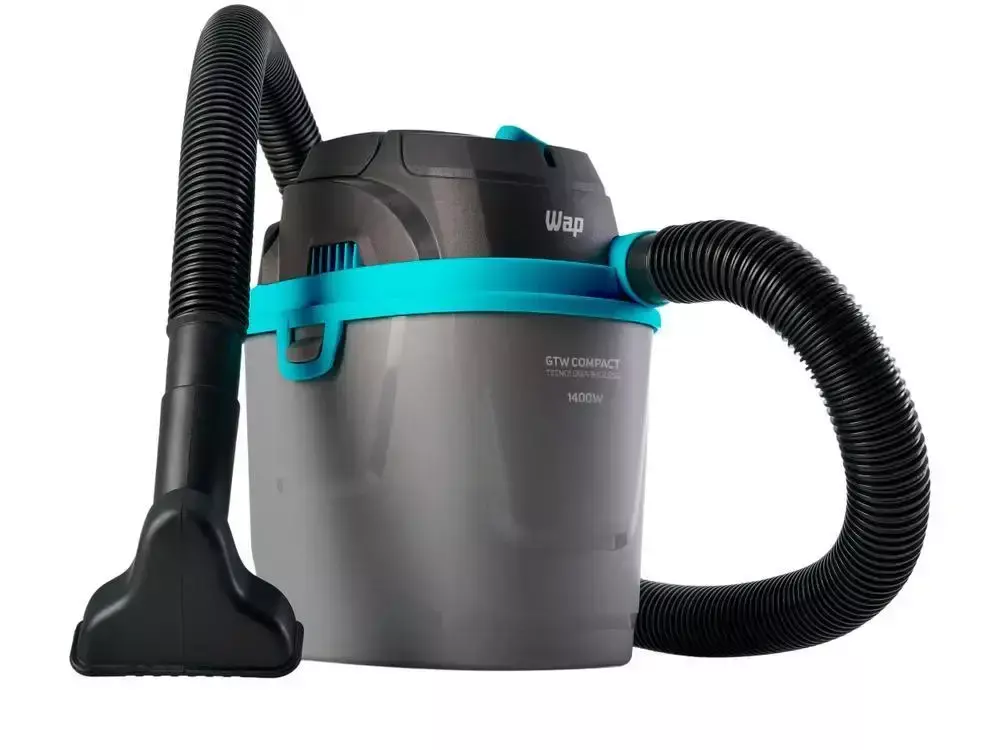 O Aspirador de Pó e Água WAP GTW Compact é a escolha perfeita para quem busca praticidade, eficiência e versatilidade na hora da limpeza. Com sua potência e design compacto, ele é muito bonito nas cores preto e turquesa. Esse aspirador de pó portátil oferece um desempenho excepcional em ambientes internos e externos. Com uma potência de 1400W, ele aspira diferentes tipos de sujeiras, sejam líquidas, úmidas ou secas. Limpe pisos, tapetes, carpetes, estofados, colchões e até mesmo o interior do seu carro de forma rápida e eficaz. Além disso, conta com a função de sopro, que permite encher infláveis e soprar folhas do quintal. É fácil de transportar e armazenar. Sua alça ergonômica de transporte proporciona conforto durante o uso, enquanto a mangueira de 1,5m e o cabo elétrico de 1,5m garantem um maior alcance durante a limpeza. Além disso, o aspirador de pó possui um volume total do recipiente de até 5,5 litros, com capacidade útil de até 2,5 litros para líquidos e 2,3 litros para sólidos. Isso garante autonomia suficiente para aspirar áreas sem interrupções frequentes. Ele vem equipado com dois filtros essenciais: o filtro de espuma próprio para sucção de água que protege o motor e garante o aumento da vida útil do produto, e o filtro de pano próprio para sucção de outras sujidades. Essa combinação de filtros permite uma limpeza eficaz e completa. Outro benefício, é o bico canto e escova, que facilita a limpeza das sujeiras em locais de difícil acesso. E para garantir uma aspiração completa e eficiente, conta também com um bico múltiplo.