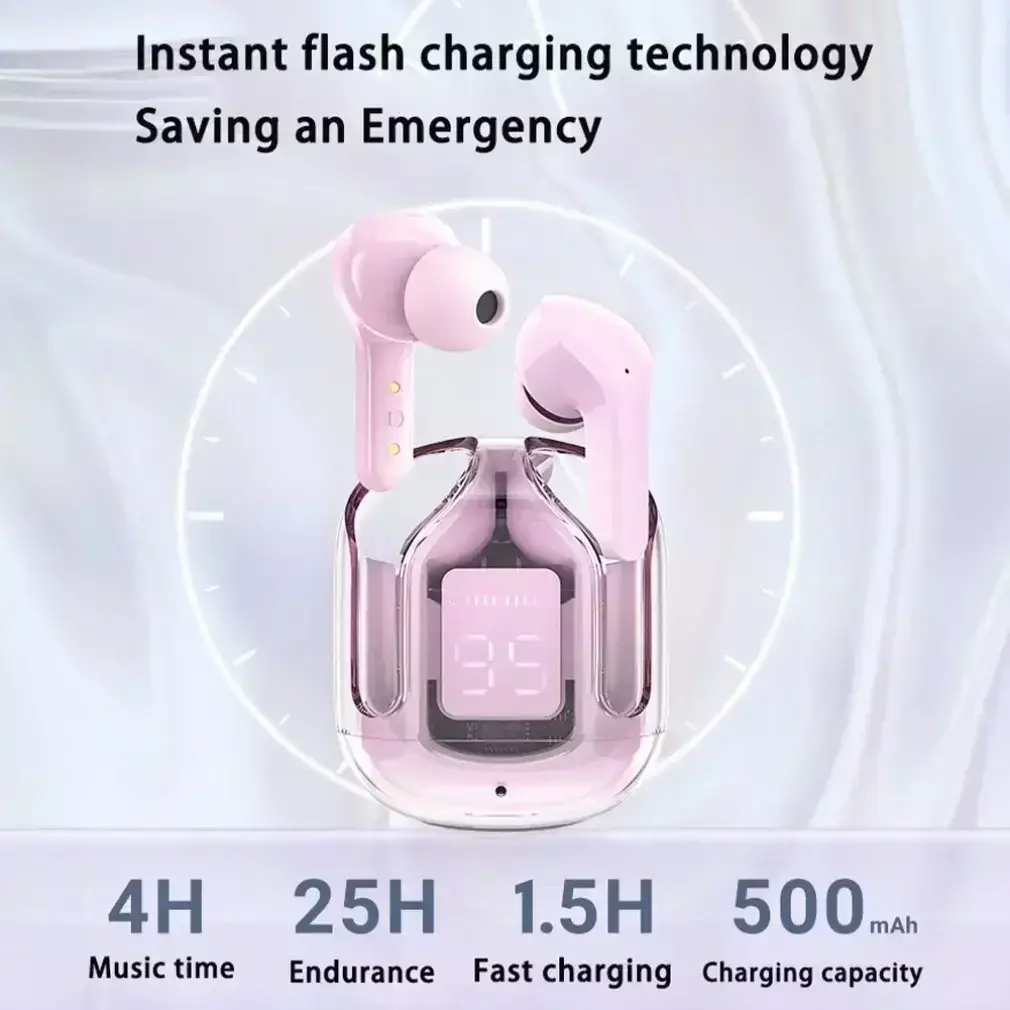 [Display digital LED e design colorido] Display LED preciso da potência do estojo de carregamento e de ambos os fones de ouvido, permitindo que você saiba o status de energia dos fones de ouvido sem fio e do estojo de carregamento a qualquer momento.Esta série de fones de ouvido sem fio com estojo de carregamento translúcido, textura futurista, 5 cores diferentes.Os fones de ouvido à prova d'água podem prevenir eficazmente danos por respingos causados pelo suor e gotas de chuva.